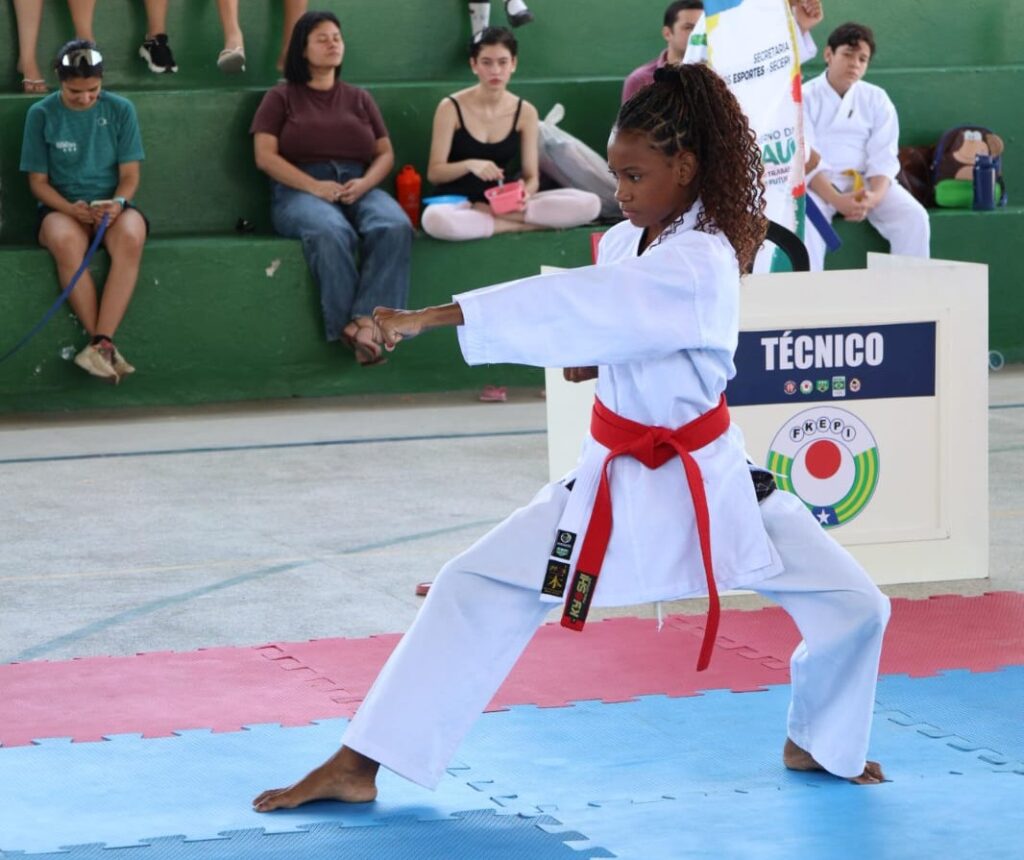 Aos 14 anos, Amanda Raquel Pereira já coleciona feitos que inspiram colegas e orgulham professores. Com 12 medalhas conquistadas, só em 2025, a jovem carateca e aluna do Centro Estadual de Tempo Integral (Ceti) Domício Magalhães de Melo, em Teresina, brilhou mais uma vez e conquistou duas medalhas de ouro na copa Karatê Kids Piauiense, realizada no domingo (28), no CT Sarah Menezes, zona Sul da capital. O pódio veio nas categorias Kata e Kumite, confirmando seu talento e disciplina nos tatames.