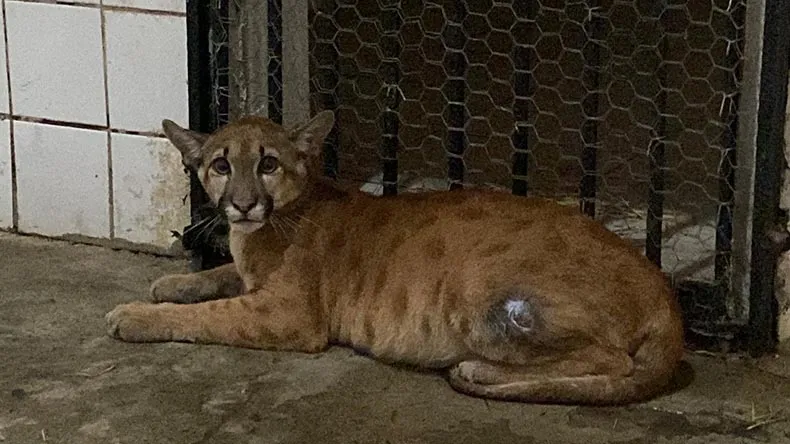 Há um mês, esta filhote de onça-parda foi resgatada em condições extremas após as queimadas no interior do Piauí. Fraca, desnutrida e com uma corda apertada no pescoço, ela mal conseguia se mover.